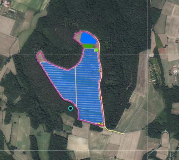 Le projet prévoit l’installation d’un verger de pommiers dans l’inter rang des panneaux photovoltaïques. Des gouttières, intégrées aux structures des panneaux permettront la collecte des eaux pluviales, recueillies dans un bassin afin d’assurer l’irrigation du verger en toute autonomie.